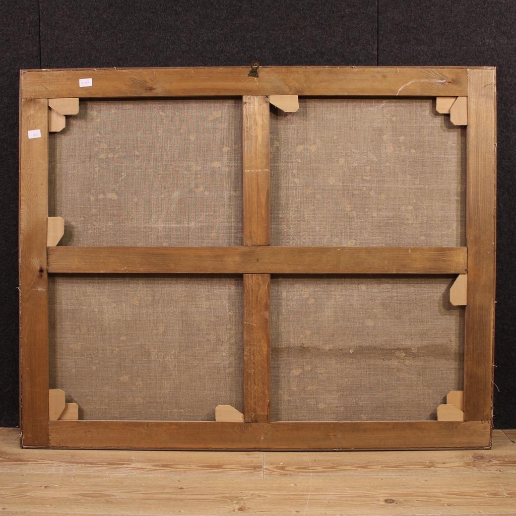 The painting has recently undergone a conservative restoration, including relining, replacement of the stretcher, and repainting in some areas. Compared to the original, the painting has altered some of the features and colors of the garments, but maintains its original structure. Painting with a beautiful patina, it has some minor paint drops; overall, it is in fair condition. Internal dimensions: H 100.5 x W 125.5 cm.