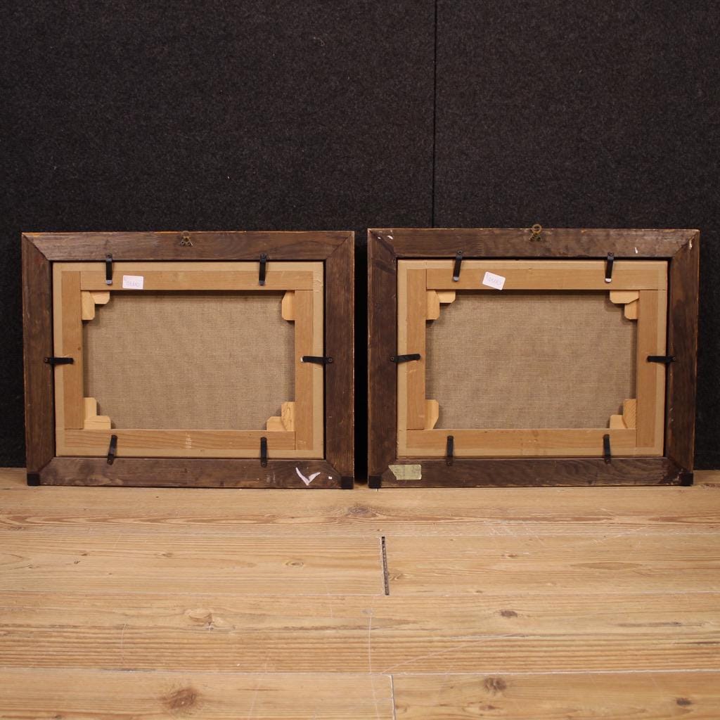 It is plausible that this is a follower of Jan Fyt, active in Belgium in the first half of the 18th century. It is rare to find a homogeneous pair of hunting subjects of such balance and quality. Their compact size makes them extremely versatile and easy to place in classic or modern settings. These striking 20th-century frames, made of lacquered and gilded wood, are beautifully decorated and show some signs of age. The paintings have already been restored with re-lining, replacement of the stretcher, and minor color restoration. Overall, they are in good condition. Internal dimensions: H 32 x W 44 cm.