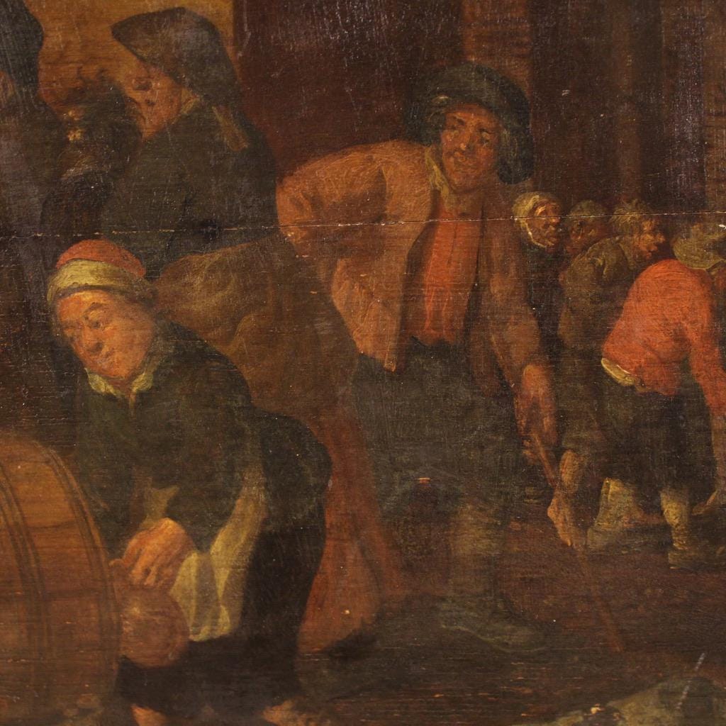 The high quality of execution and the composition, punctuated by the street running deep between buildings and towers, are typical of Droochsloot. He favored a reddish-brown palette and specialized in genre scenes and allegories set in villages populated by rough-hewn figures, peasants, and beggars, depicted in detailed and expressive detail. (The painting is not currently accompanied by an expert opinion, but one can be requested upon payment of the relevant additional costs.)