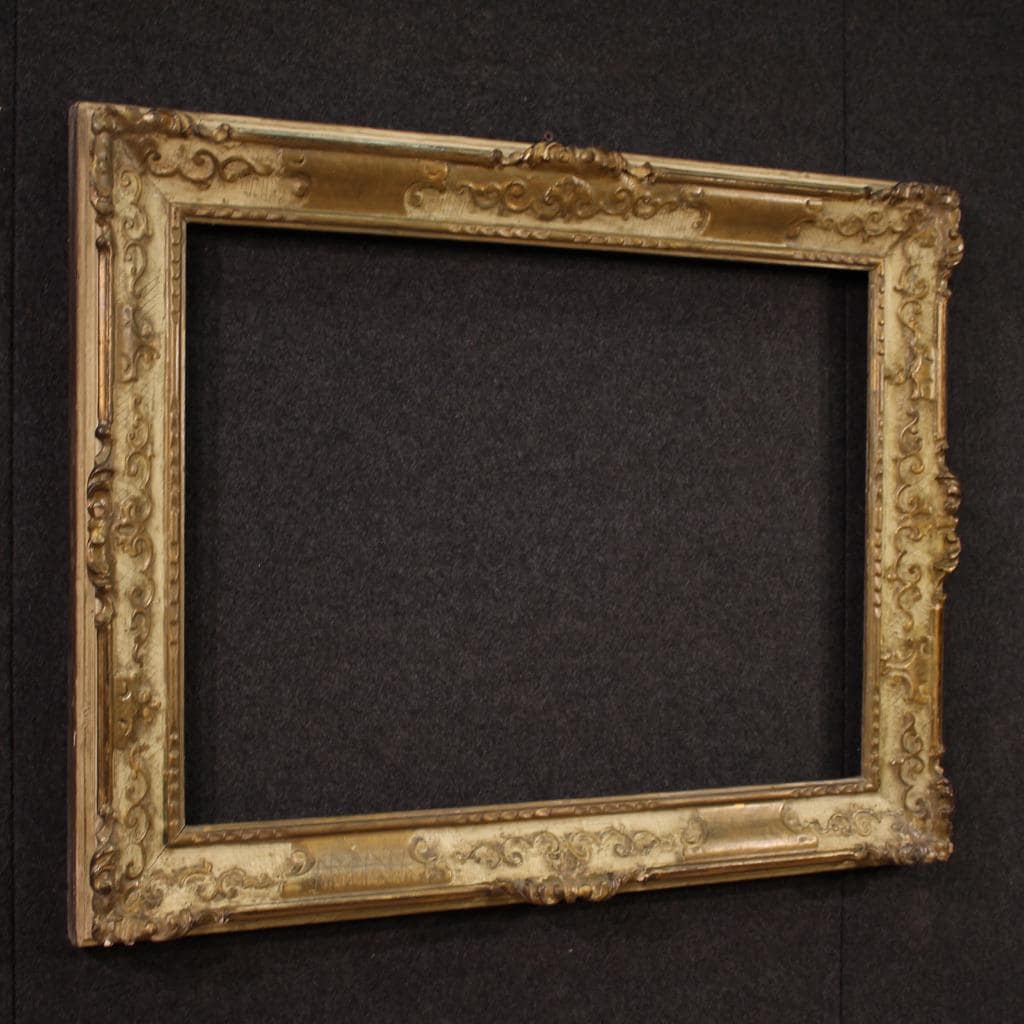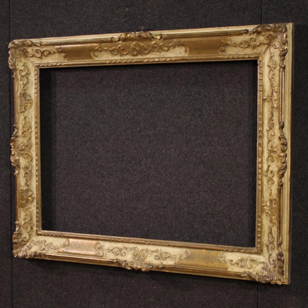 Mid-20th-century Italian frame. Carved, lacquered, and gilded wood of good size and quality. The frame can hold a painting or mirror with a maximum size of 58 x 78 cm (22 x 30 in).