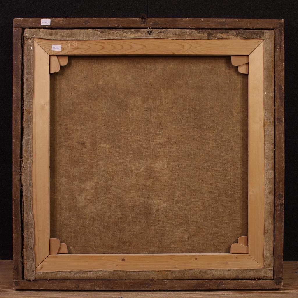 A painting of ideal size, perfect for a prestigious setting, whether classic or contemporary. A Homeric page translated into painting with rare intensity, a refined work for a collector of mythological paintings. The 20th-century frame is in carved and lacquered wood, with various signs of aging. The painting has already been restored with re-lining, replacement of the stretcher, and restoration of the color in small spots. Overall, it is in good condition. Internal dimensions: H 89.5 x W 89.5 cm.