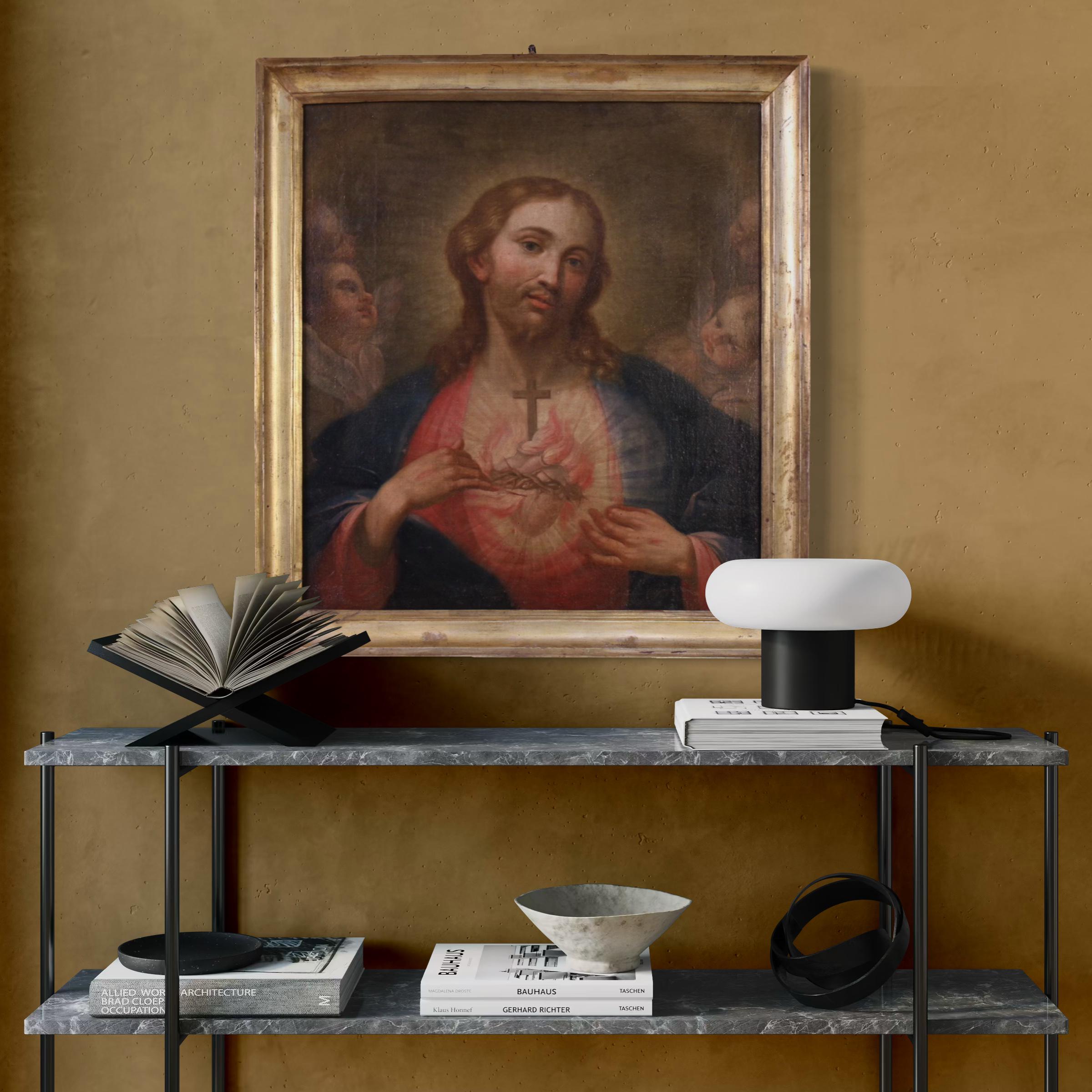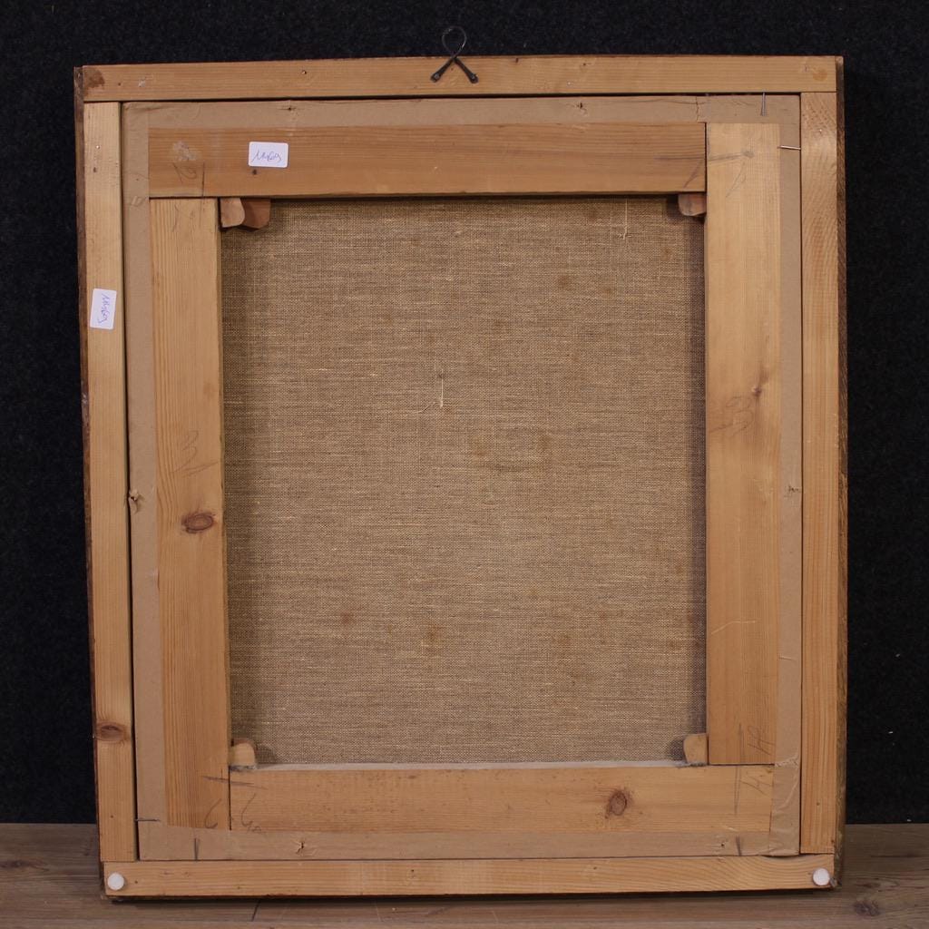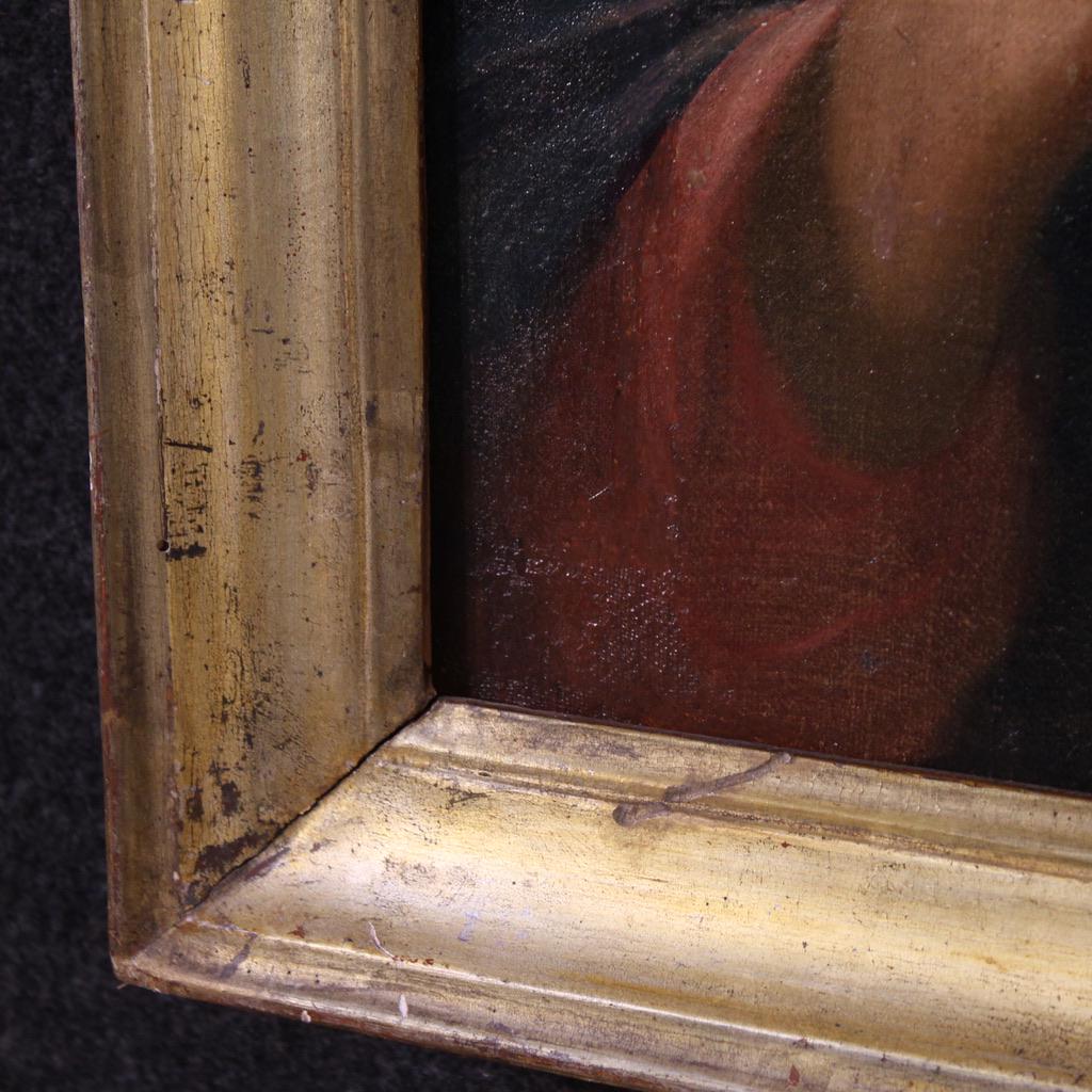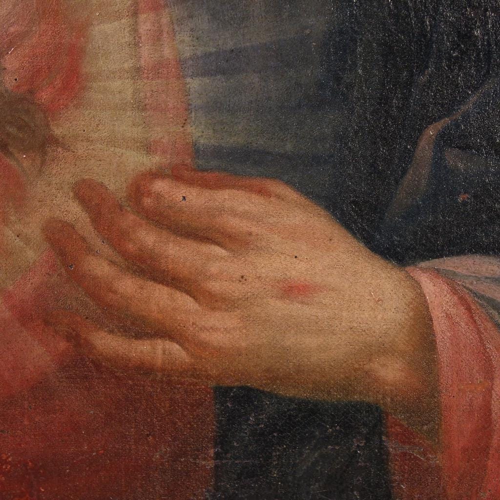 A good-sized and attractive artwork, it is ideal for antique dealers and collectors of sacred art. The painting has already undergone conservative restoration, including relining, replacement of the stretcher, and retouching of small areas of color. Overall, the painting is in good condition. Interior dimensions: H 63.5 x W 56 cm.
