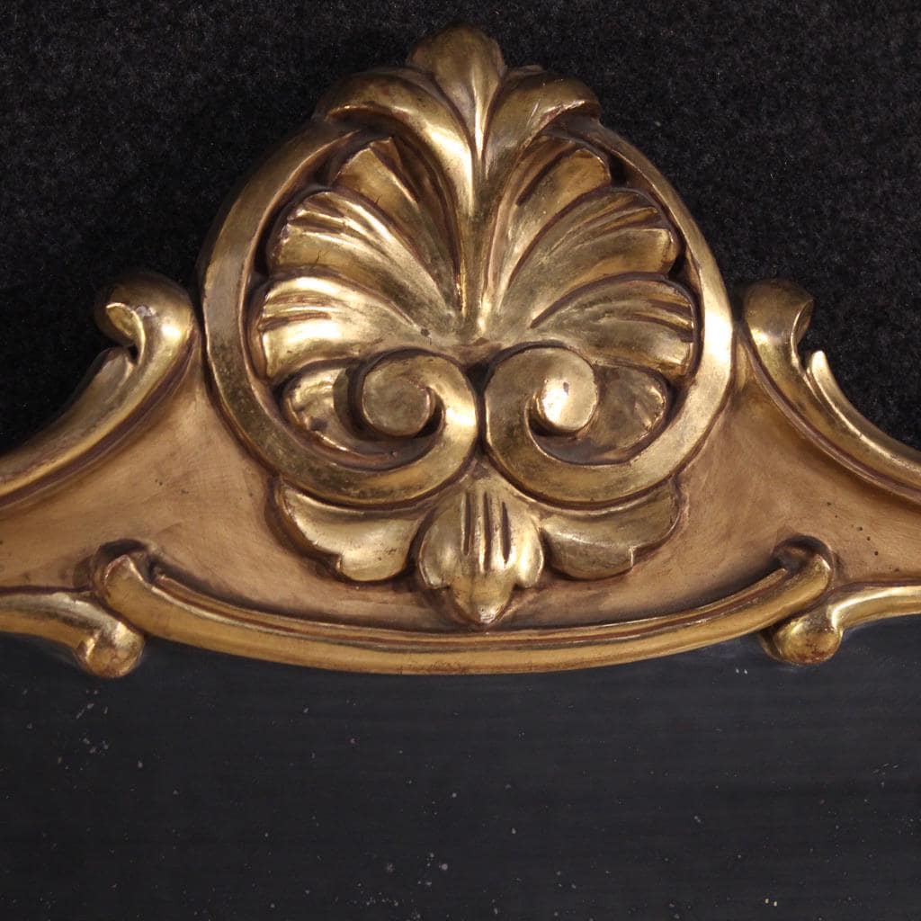 Mid-20th-century Italian mirror. Beautifully proportioned and elegant, antique-style furniture made of finely carved, painted, and gilded wood. The vertical mirror features the original mirror with a few small stains/marks, but is chip-free and perfectly reflective. This furniture can easily be placed anywhere in the home, making it a favorite with antique dealers and interior decorators. Elegantly designed and adorned with attractive floral decorations, it is structurally sound and solid. In good condition.