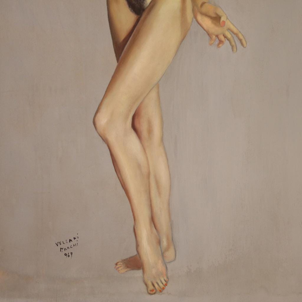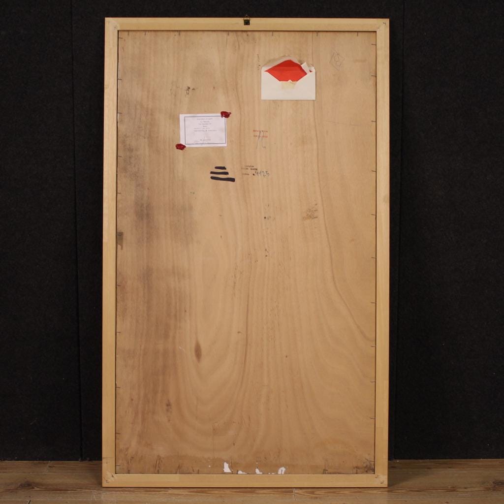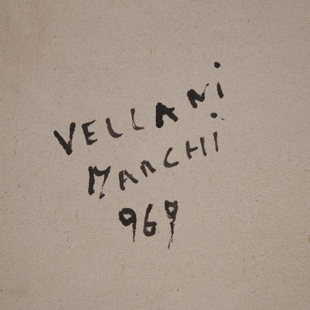 Painting signed lower left Vellani Marchi (see photo), attributed to the painter Mario Vellani Marchi (1895-1979). Authentication is missing. On the back, references to the art galleries that exhibited it are included, as well as a stamp bearing the inscription Fondazione Vellani Marchi Archivio No. 1125. This painting is part of a triptych (see photo and request the price for the whole piece, if available), for antique dealers and collectors.