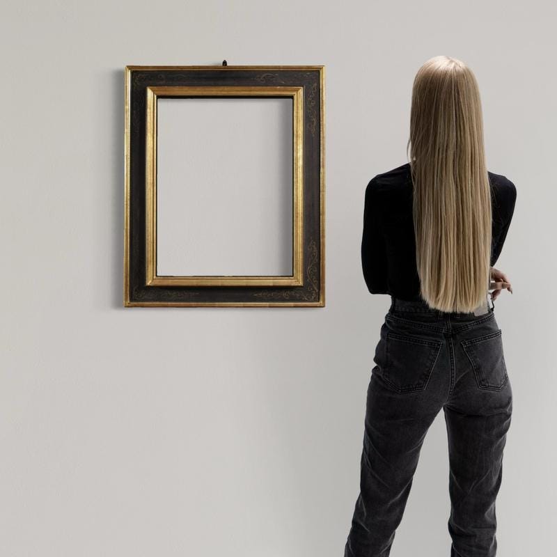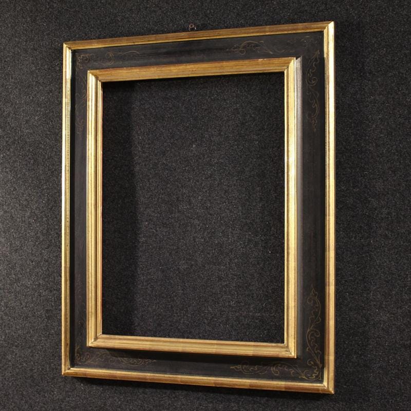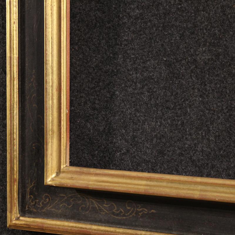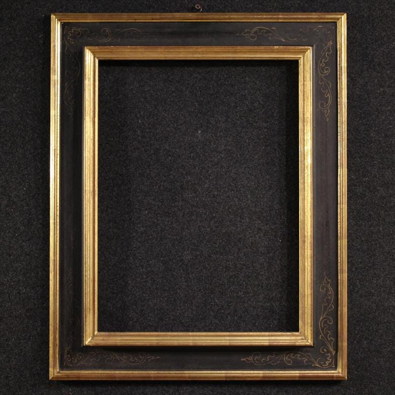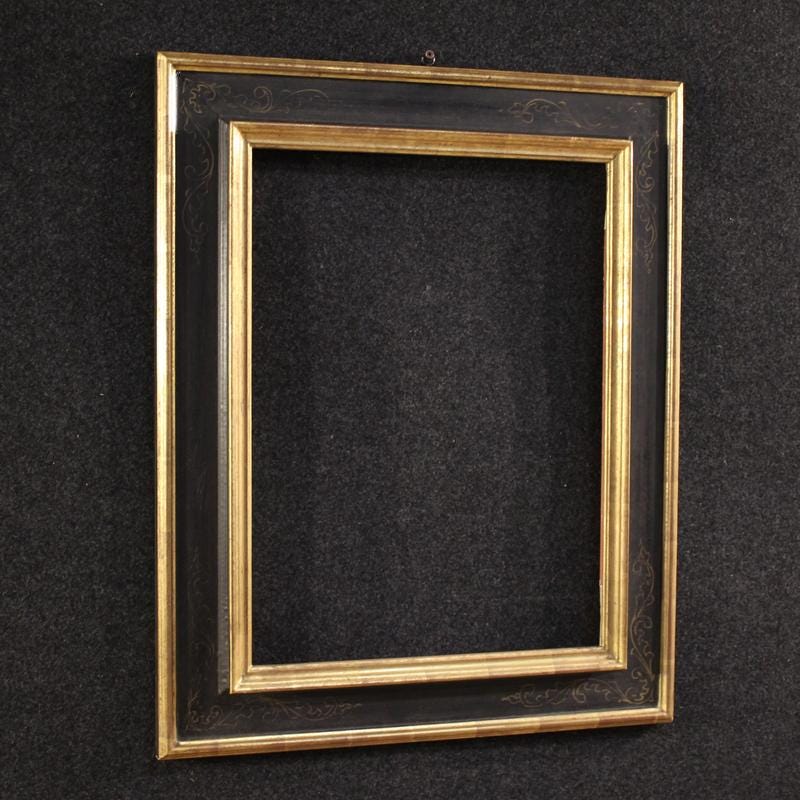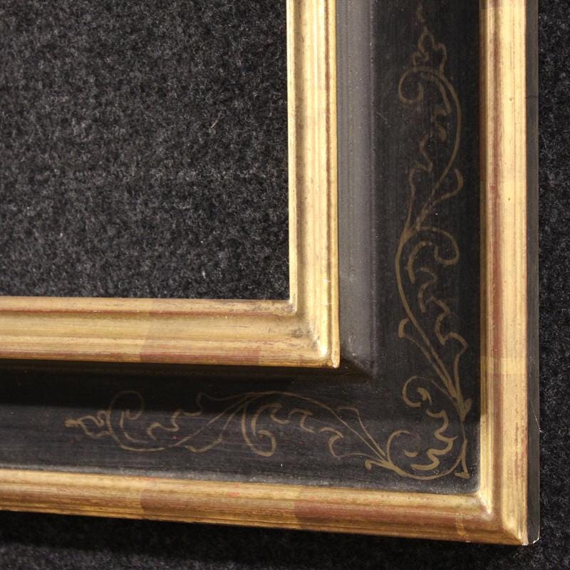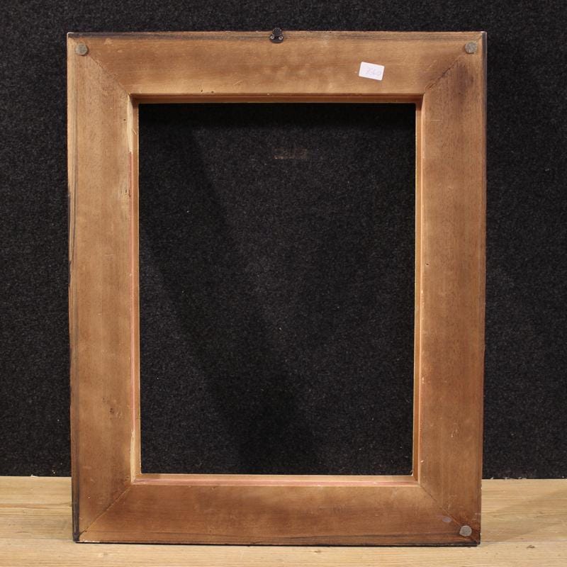 Tuscan frame from the second half of the 20th century. High-quality and beautiful carved, lacquered, gilded, and painted wooden furniture. The frame can hold a mirror or painting with maximum dimensions of H 57.5 x W 42.5 cm. Beautifully sized and proportioned, it can be positioned vertically or horizontally by moving a special hook. A pleasing decorative frame for antique dealers and interior decorators, it can easily be placed anywhere in the home. Structurally sound and solid, it is in good condition.
